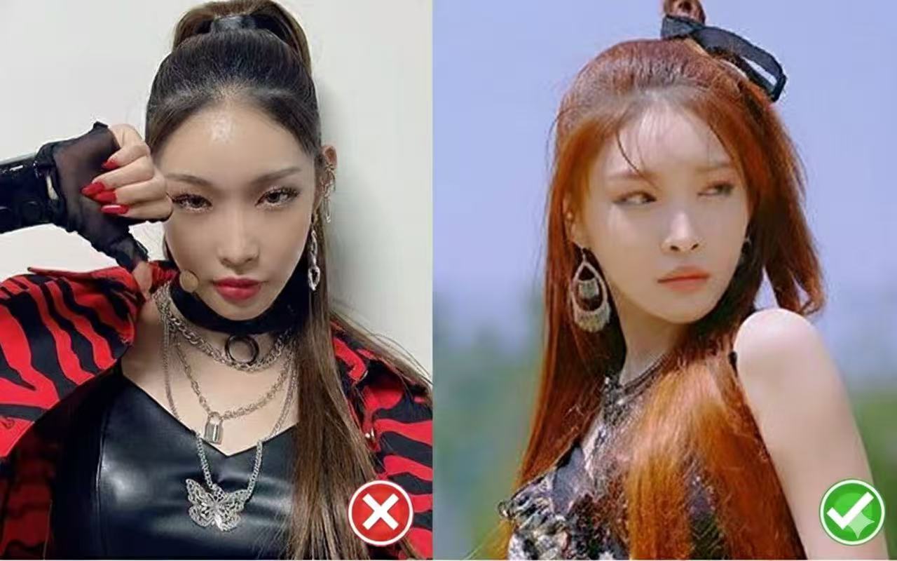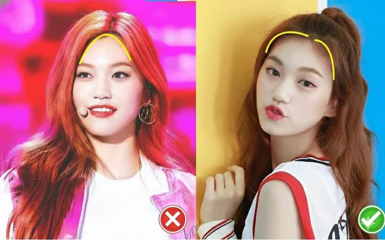 ① Asymmetric Cover (S-Curve): Cover one side, expose the other (tuck behind ear). The covering side should have an "S" curve. Asymmetry distracts attention. Don't cover both sides—it looks unnatural.