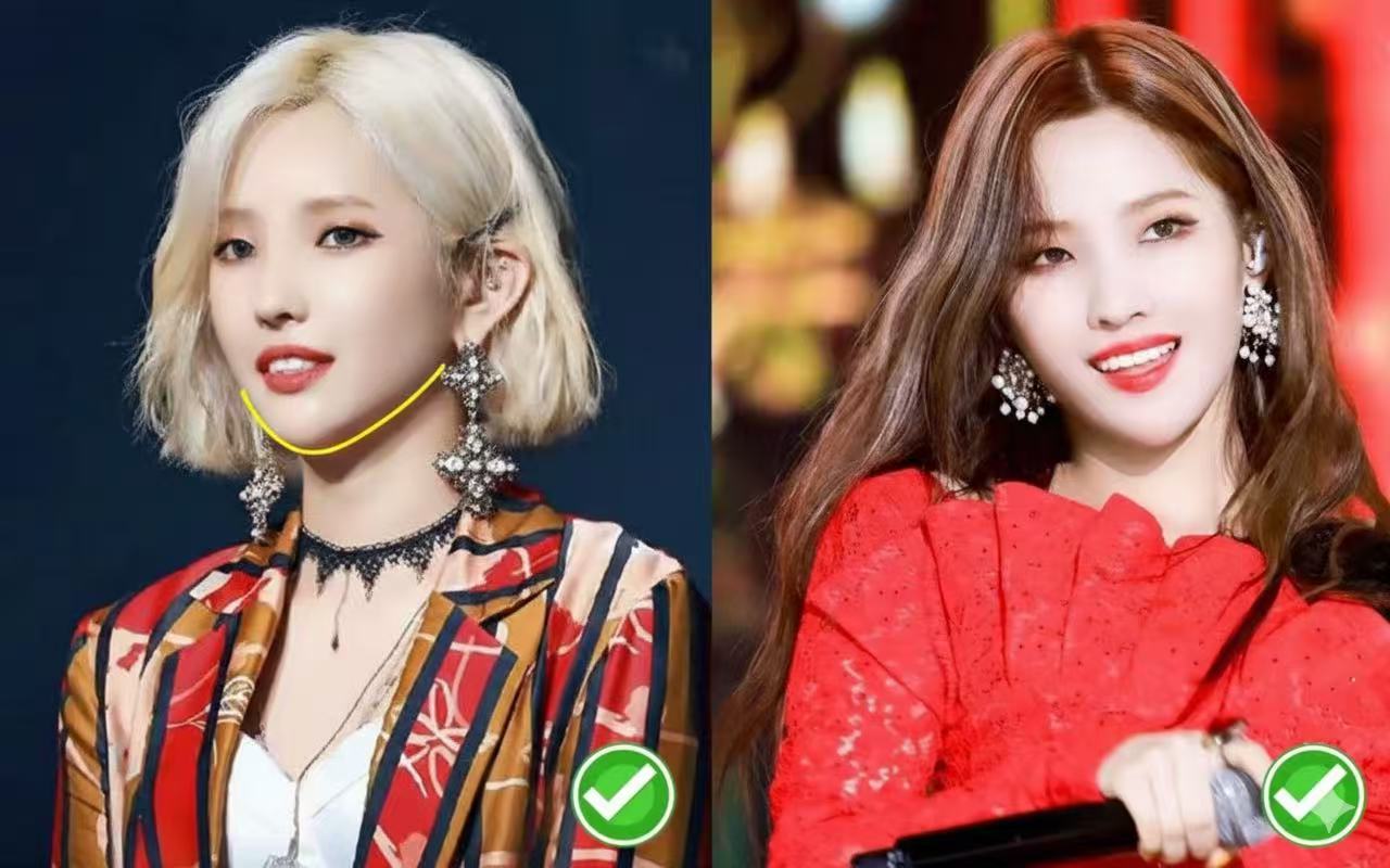 ① Small face with good proportions? Both work. ② Heavy jaw or blunt chin? Avoid neck-length bobs. Go for long hair or tie it up high.